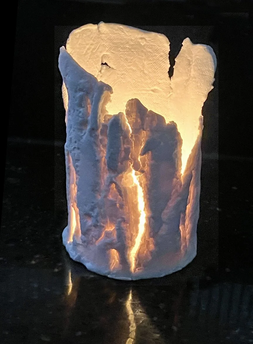 Our lives are entwined with trees, from memorializing life events by planting a tree, to savoring the shade, collecting fall leaves or viewing the owl who lives in the hemlock outside the second floor office. The trees in my very small yard can stand in for a much larger environment. They have become my inspiration and a focus of my work. What is happening in that environment now is unsettling. The resilience of trees is not immutable.